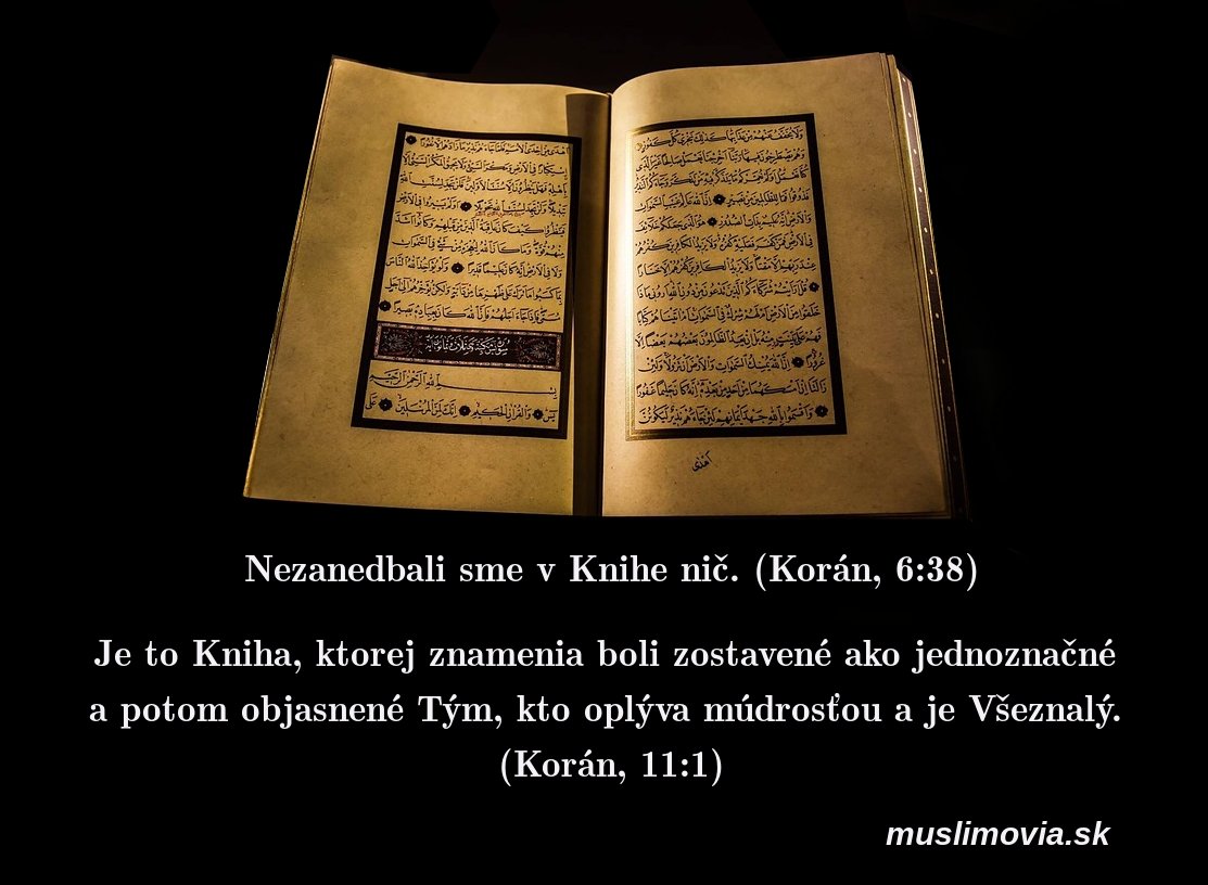 Zoslali sme ti dole Knihu s pravdou (Korán), potvrdzujúcu to, čo jestvuje z Knihy a ako svedectvo o nej. (Korán, 5:48)
