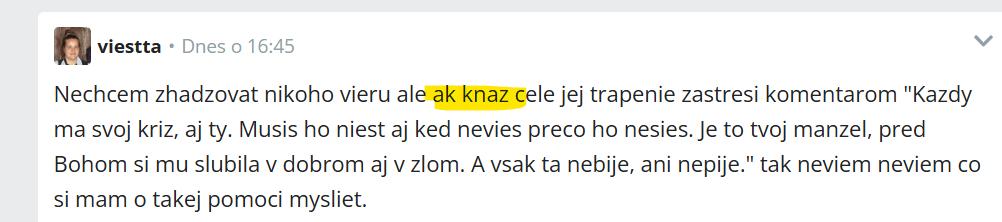 @anonym_autor Bola som takto pokecať si s kňazom v Marianke aj s kňazom u nás a fakt som z toho dosť čerpala a nabrala silu....a rozviedla som sa....slubili mi pomoc aj naďalej. Asi som mala štastie na dobrých knazov čo vedia nieco o živote a sami bojuju s mnohymi problemami, alebo to v živote nemali jednoduche.....