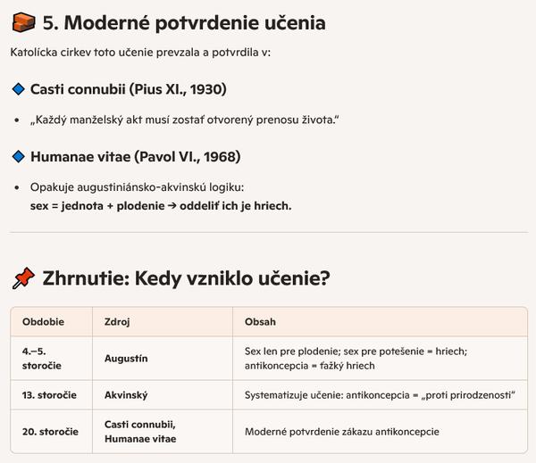 @anonym_2cb318 Vo Svätom písme nenájdeš nič konkrétne o antikoncepcii. Katolícka cirkev odmieta umelú antikoncepciu z teologických, morálnych aj filozofických dôvodov. Nejde len o „zákaz“, ale o ucelené chápanie človeka, sexuality a manželstva. A takto to mali nastavené všetky kresťanské cirkvi a denominácie až do 20. storočia. S príchodom rôznych antikoncepčných metód sa to začalo v protestantských cirkvách "lámať", až v tom napokon ostala katolícka cirkev sama. Otázka je, čo viedlo všetky tie protestantské denominácie k tomu, že zmenili svoj názor. Zistili, že Boh to s človekom myslí inak? Že sa dovtedy vo svojom učení mýlili? Alebo len naskočili na nový trend, ktorý sa začal vo svete rozmáhať a prestalo ich trápiť, aký bol pôvodný Boží plán? Katolícka cirkev učí, že manželský (sexuálny) akt má dva neoddeliteľné významy: zjednocujúci – vyjadruje lásku a úplné sebadarovanie manželov a plodiaci (otvorený životu) – prirodzene smeruje k možnosti počatia. Umelá antikoncepcia úmyselne oddeľuje tieto dva významy, čím mení vnútorný zmysel aktu. Všetko to súvisí aj s chápaním manželstva, že v katolíckej cirkvi sa uplatňuje sviatostným spôsobom a toto nie každý chápe, resp. dokáže prijať.