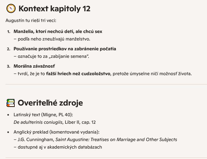 Ako sa na to pozeráš v takomto celkovom kontexte? Ja tomuto nechápem, tak buď boh nás chce trápiť (a čo je horšie rozpad manželstva, alebo manželský sex bez plodenia), alebo Augustín zaviedol niečo čo boh nežiadal ani Ježiš a apoštoli nepožadovali od kresťanov.