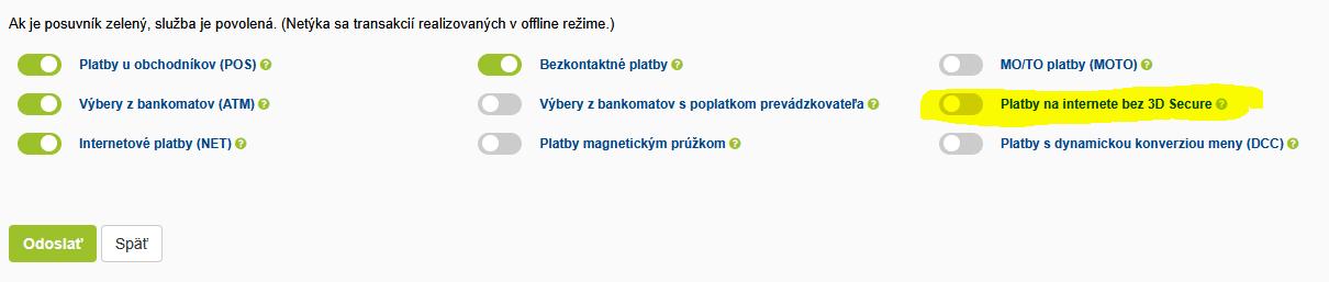 Ak už máš zapnuté maj nastavený nízky limit na internetové a MOTO platby, ak ťa niekto okradne tak len do výšky nastaveného limitu.