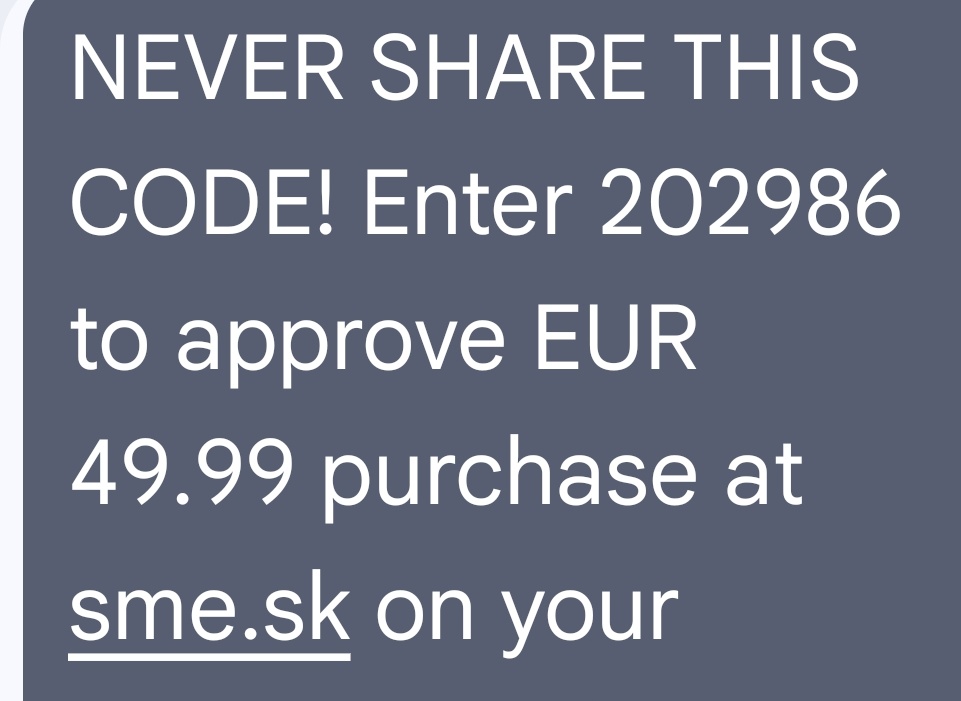 Sorry mylis sa toto je screen print z mojho mobilu a SMS je od banky ze nechcu pokracovat v platbe pokial nezadam kod nevytlacil som celu spravu od banky ktora je dost dlha , ani nechcu pripustit k portalu.