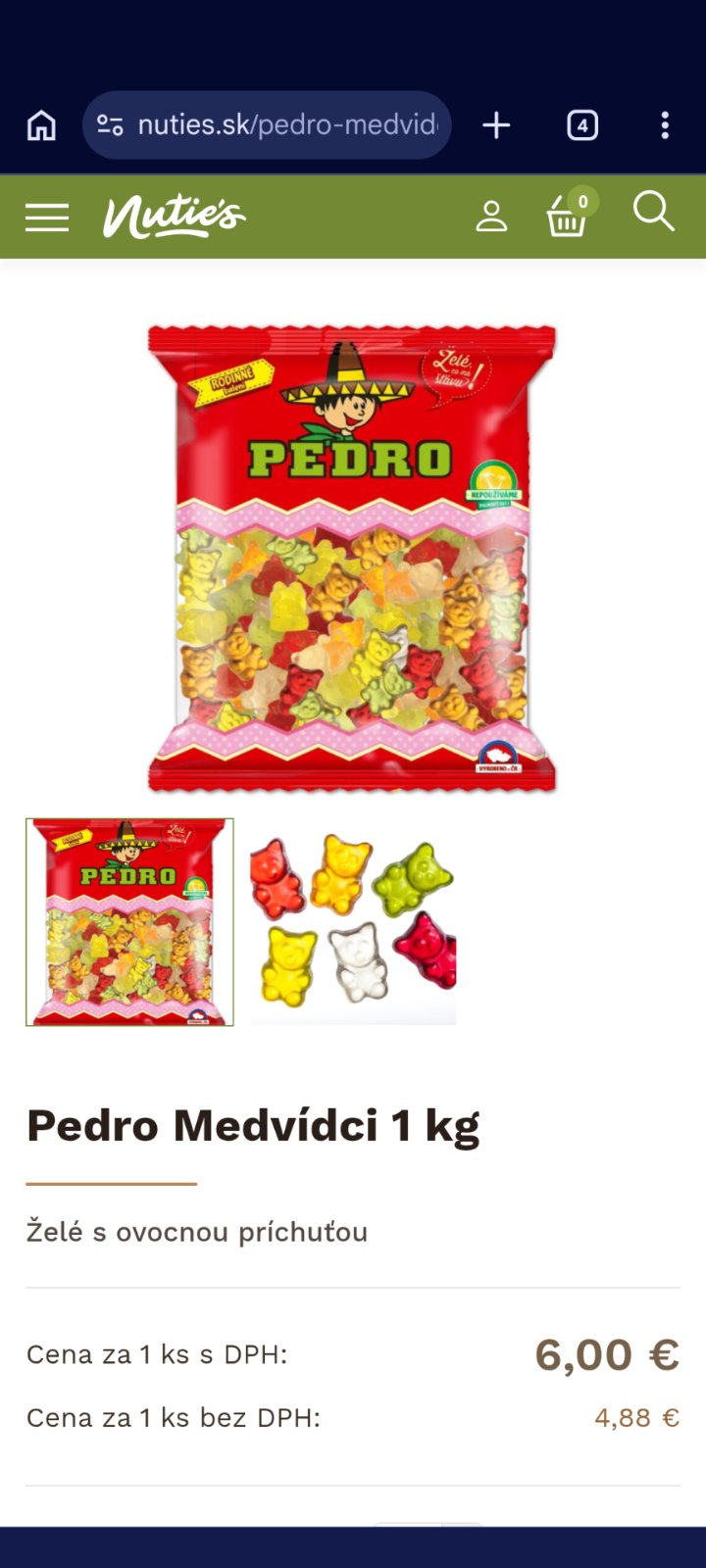 Ahojte, syn dnes nakupil Pedro cukriky, do takeho kornutu si navolil, ja neviem ci 1,5kg kornut, platili za to 60€? Je to bezna cena? Mne to pride teda vela, ked vidim kolko stoja balene Pedro cukriky saciky? Ďakujem