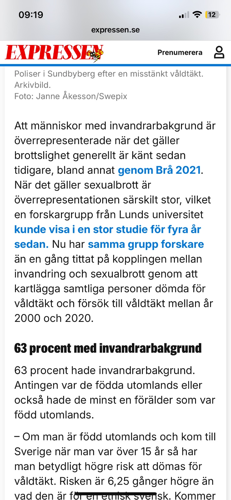 In Schweden haben rund 63 Prozent der wegen Vergewaltigung Verurteilten einen Migrationshintergrund, überwiegend aus Drittstaaten wie Ländern im Nahen Osten und Afrika. Bei Mordfällen lag der Anteil mit Migrationshintergrund bei etwa zwei Dritteln der Täter im Jahr 2022. Bei Verurteilungen im Bereich der Bandenmorde waren sogar 100 Prozent der Täter Menschen mit Migrationshintergrund.