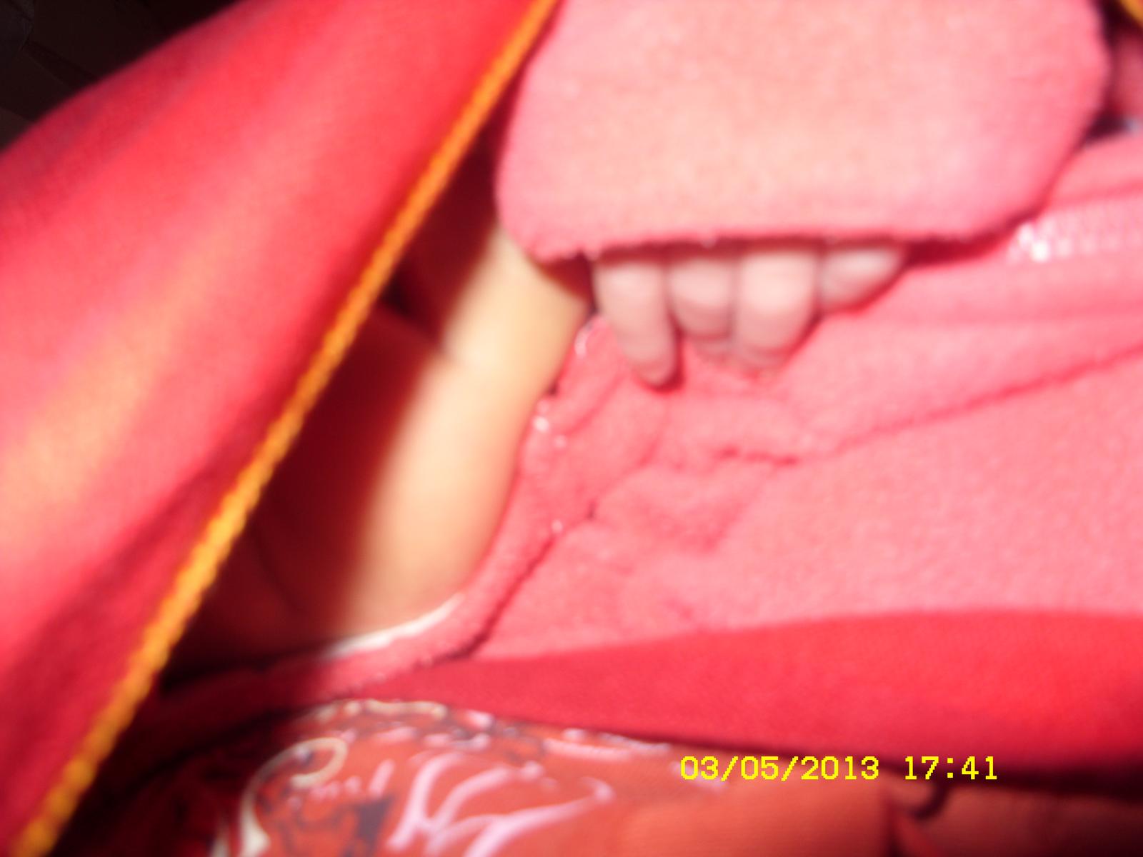 @wewe22 treba kapsu povoliť a bábo vložiť šikmo do šatky. teda chrbatik nie je rovnobezne s farebnymi pruhmi na šatke ale hlavička je uložená na kraji šatky a nozicky smeruju sikmo dovnutra. hlavicka musi byt v satke volne, nie pritlačená do strany ani dopredu. pruh satky ktorým fixujes hlavicku mozes viest aj popod hlavičku aby ju to netlačilo o tvoju hrud ako je to tu: http://www.sashe.sk/KMENT/journal/viazeme-teda-.... popozeraj aj tu: http://www.nosenideti.cz/clanek.php?clanek_id=92 je tam velmi pekne vysvetlené ako správne uviazat kolísky.