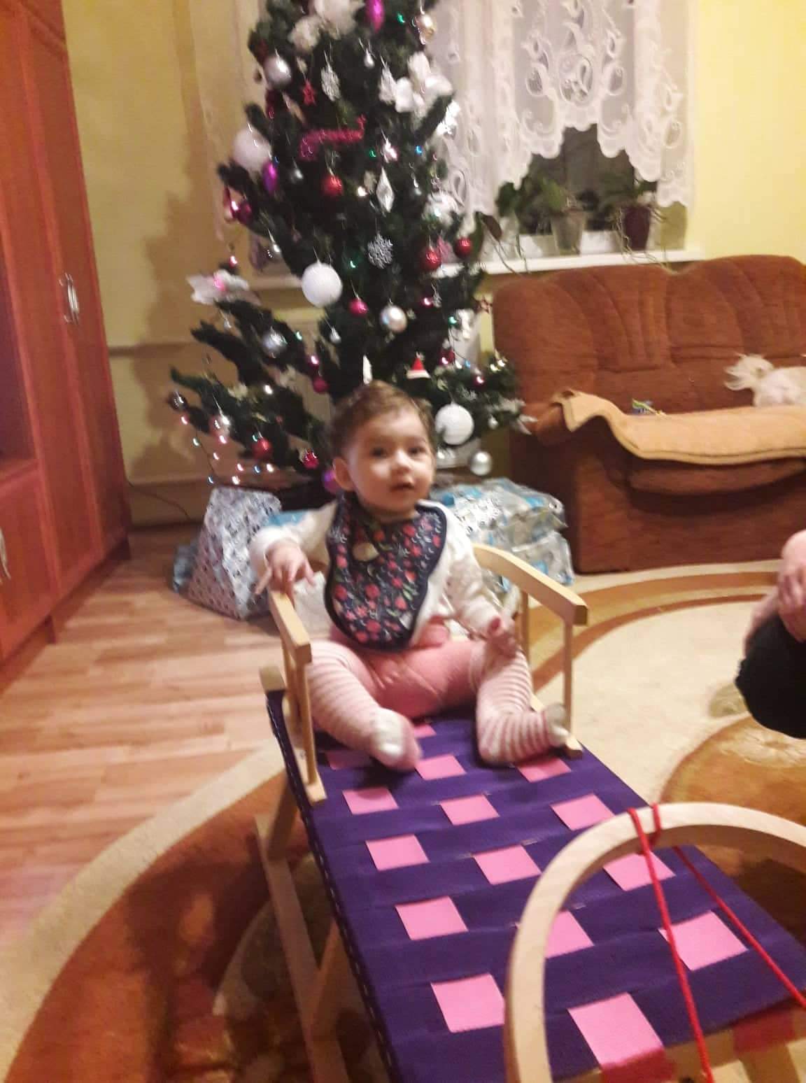 Zlatu mas princeznicku,po uj krasne ti sedi na saniach,nasho som este neskusala takto,zatial len ked ho drzim chrbatikom k sebe tak na ruKach sedka ,zke boli prve Vianoce s dcerkou?u nas tie najsamkrajsie na svete....malu mas uz zdravu?ste boli tusim chorejsi.....