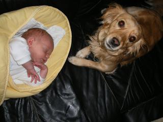 no mirka to tak vyzerá na tých fotkách, ale chlpáč je žiarlivka... Vždy ked začne Dominik plakať tak začne vyžadovať pozornosť aj on 😅