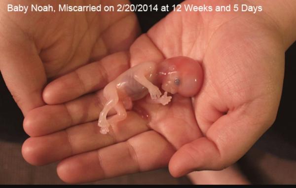 Na obrázku je Noah, syn Lary Price, ktorý zomrel pri spontánnom potrate vo veku 12 týždňov a 5 dní.