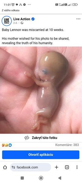 @misiak7777 anonym vyššie zdieľal článok o tom, že fotka, ktorú tu niekto vložil, nie je dieťa, len veľmi nepresný model - na margo toho, že v tak skorom týždni "to" ešte nevyzerá ako dieťa. Väčšinou takéto fotky nepridávam, lebo viem, že niektoré ženy sú statočné keď majú druhým odporúčať potrat, ale precitlivele, keď ide o vizuálny materiál. A teda že by tu bola vlna hejtu na to. Ale keďže sa tu vyslovene rieši ako plod v tom čase vyzerá, či nevyzerá, ...