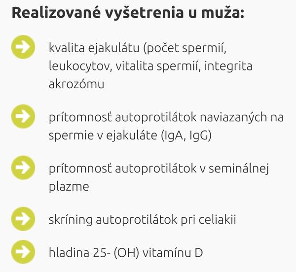 V NR vysetruju aj to... ci moje a jeho latky su schopne splodit novy a zdravy zivot. Aspon takto mi to bolo odinterpretovane. Prve vysetrenia 355€ a potom podla toho aka je liecba. Potom nemusis nic platit alebo len nieco co neplati zdr.poistovna