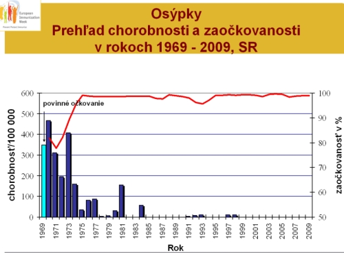 1969: Očkovanie proti osýpkam bolo zavedené do plošného očkovania detí vo veku 12 mesiacov.
