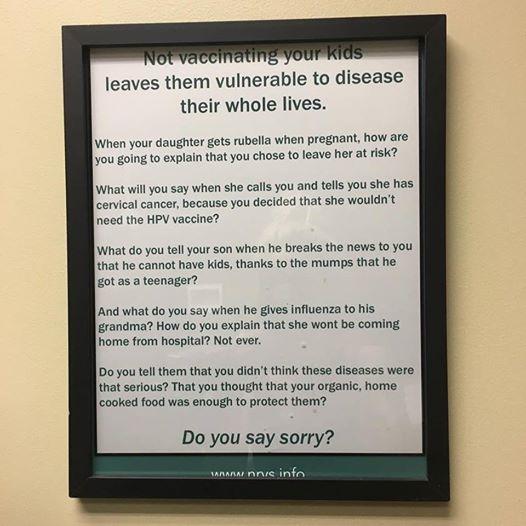 Presne toto je v sucasnosti nasledok ockovania. Ludia prekonavaju detske choroby v dospelosti,pretoze vakciny maju zivotnost tak 10-15 rokov. Ten odkaz na dverach je paradne vydieranie. Ja sa pytam, co mi povie lekar, ze moj vitalny starky chodiaci, hovoriaci, samostatni, hravajuci volejbal, sa uz NIKDY nevratil z nemocnice, kde sa dostal na pozorovanie po uraze, priviazany o postel,bez jedla a vody,lebo mu ju nik nepodal. Vraj zapal pluc z vdychnutej stravy za 2 dni na JIS! Ked mi na toto odpovie nejaky lekar,potom nech si pise na dvere, co chce o tom, ako sa niecia babka nevrati po nakazeni chripkou! V prvom rade nech sa pyta sam seba,preco sa stari ludia nevracaju z nemocnic a ked nejaka zena chce byt ockovana proti rubeole pred tehotenstvo,nech tak spravi v dospelosti ale nech je to jej rozhodnutie,nie rozhodnutie stath.