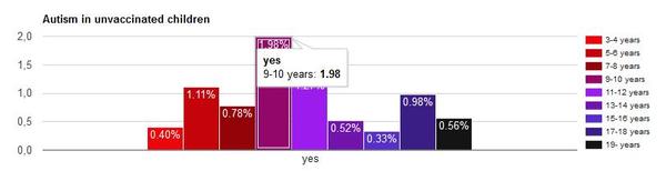 @eva8 už som to ani ja tam nenašla, ale je odtial, zrušili graf podla veku, už dali len celkové vysledky, lepšie to vyzerá, ked porovnávaju len deti do troch rokov neočkovane s celkovou populáciou, nevadí tých informácii, že neočo deti maju autizmus je dosť: a potvrdí to aj nejedna mamka na MK.