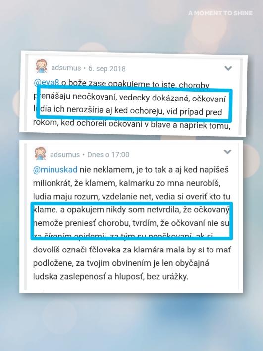 @adsumus 😂 ty si mi doteraz nepodlozila vedecku studiu, ktore ma tvrdit, ze ockovany clovek neprenasa danu chorobu. Cize ziadna zaslepenost a hlupost. Klamarku si urobila zo seba sama, pretoze prave to, ze ludia si vedia overit kto klame a kto nie. A este aj kvietu si oznacila za trapnu... neboj sa, vzdelanie tu mame, ale zjavne ty nevies pochopit rozdiel medzi vytvorenim protilatok a medzi infekcnostou. Krasnu kolaz som ti urobila, aby si nezabudla, co kde tvrdis....