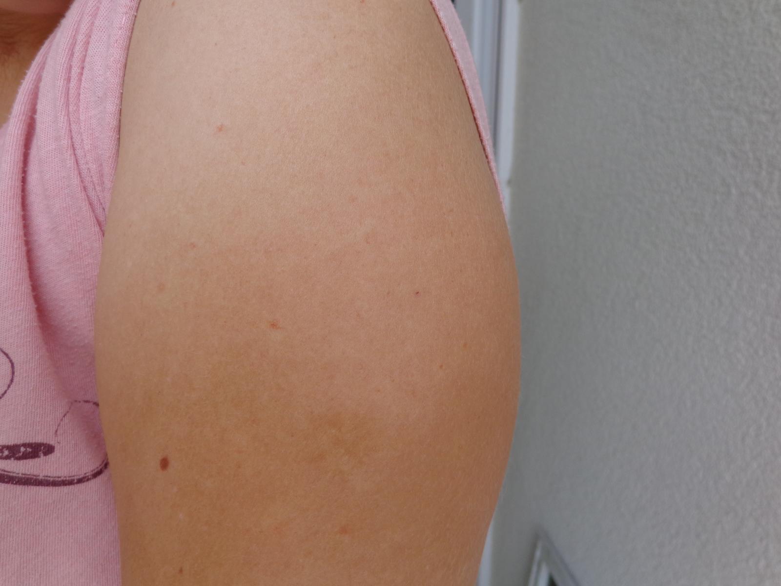 No tak len pre zaujímavosť koho zaujíma aké to je sa zaočkovať popisujem situáciu. Samotné pichnutie nebolelo vôbec, žiadna krvička, ani začervenanie, celkom nič. Okolo obeda nastupila uplne mierna bolesť ramena pri rozpažení, na večer ma začala bolieť hlava, ale neviem či z počasia alebo z očkovania alebo som sa dehydrovala, zaliezla som do postele a spala 12 hodín až do rána, zobudila ma dcera ráno,asi by som pospala aj dalej. Dnes na druhý den po očkovaní, ruka nebolí vôbec. Na fotke je moje rameno ani dubku nevidno. Akurát ma mrzí, že tá vakcína nie je aj na obrnu,ako som si pôvodne myslela, ale budem hladať aj dalšie možnosti. Aj teraz ma berú ešte nejaké driemoty, ale to bude asi tým počasím. 😉