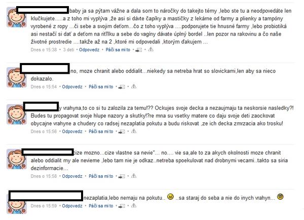 "Tu na tom to fore, kde ked napíšeš, že si očkuješ svoje dieťa, čelíš okamžitým útokom, že nie si matka, že ho zabíjaš, že mu ubližuješ, že máš čakať čo všetko zlé ho postretne, že si podplatená, vyšinutá a tak dalej a tak dalej. "