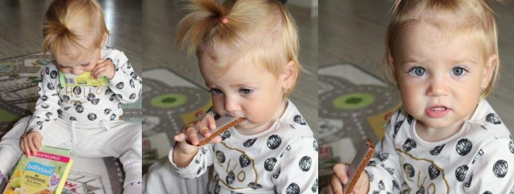 Medzi maškrtami nájdete Babylove bio hruškové tyčinky, ktoré Emma chrumká, keď niekam ideme, nezaberú veľa miesta v taške a na chvíľu zasýtia. Chutnala som aj ja, ale som milovníkom sladkého, čiže tyčinka bez pridaného cukru v bio kvalite mne osobne veľa nechutila. Stačilo však, že dieťaťu áno a má zdravú desiatu spolu s jabĺčkom.
