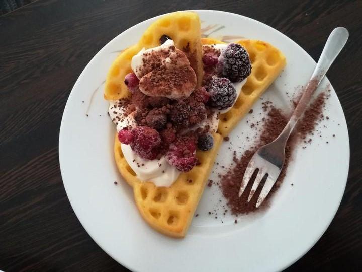Ako prvé som si na testovanie vybrala formu na vafle. Nemohla som vydržať už ani sekundu a okamžite som šla na internet hľadať recept na tie najlepšie vafle/gofry. Ponuka bola pestrá a tak som zvolila jeden recept, ktorý som používala celé testovanie, len som občas obmenila druh múky, prípadne som spravila slanú formu, základ bol však ten istý. Musím povedať, že som zo začiatku váhala, či formu vymastiť, alebo nie, keďže ja so silikónovou formou nepečiem a nemám ani skúsenosti, tak som prvýkrát formu vymastila kvapkou oleja. Ďalej som už však olej na vymastenie formy nepoužila a piekla som teda za dva týždne s tou to formou nespočetne veľakrát. Vafle z tejto formy boli chrumkavé, samé vypadávali z formy. Ja som už potom len hľadala, čo mi moja chladnička ponúka, aby som mohla dezert aj vyzdobiť. Prvé vafle vyšli naozaj krásne a keďže sa blížila hodina, kedy sa manžel vracia z práce a on ani len netušil, čo ho doma čaká, naservírovala som mu pekný tanierik. Prišiel domov a veru sa potešil, keďže sladké on môže.