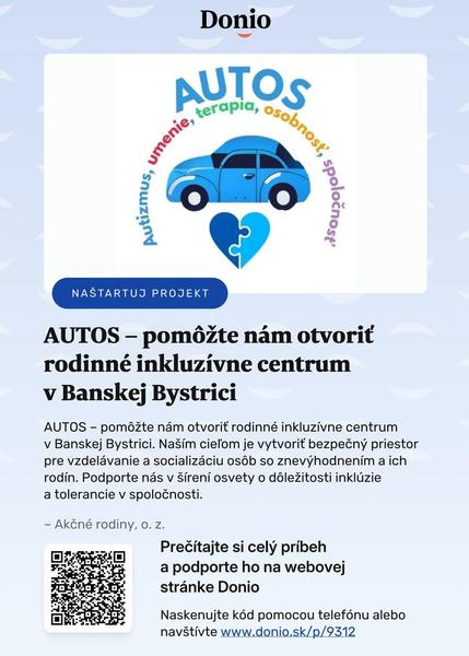 AUTOS – pomôžte nám otvoriť rodinné inkluzívne centrum v Banskej Bystrici