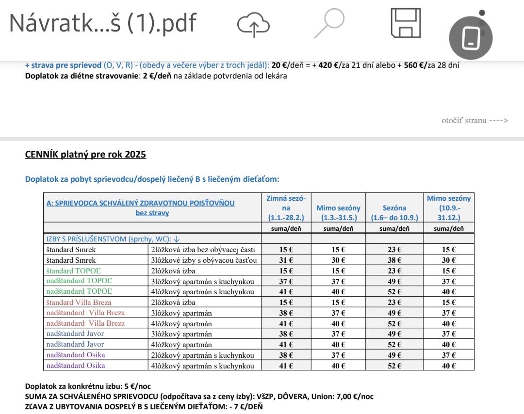 Áno ja- sprievodca, zdravotná poisťovňa schválila no hradia 7 eur/deň no poplatky sú vyššie. Keď chodíme na kúpeľnú liečbu vždy doplácam okolo 1000 eur + bude treba nejakú hotovosť aj tam + cestovné náklady