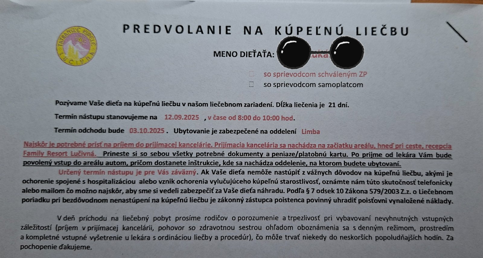 @hiro tu je predvolanie na kúpeľnú liečbu. A prosím čítajte z porozumením.