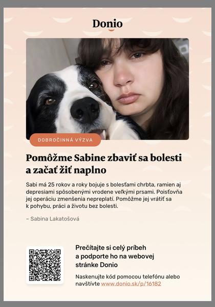 Pomôžme Sabine zbaviť sa bolesti a začať žiť naplno