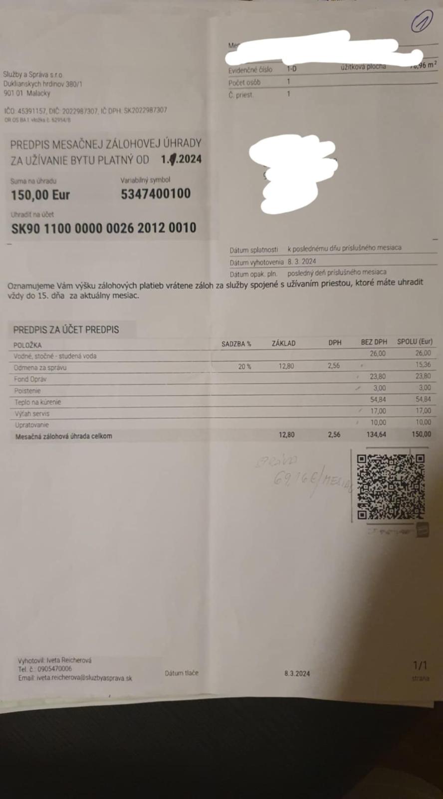 @zojazoja 1600 zaplatila zalohove platby za mesiace marec - december , plus este tam treba priratat teda tu garaz a elektrinu