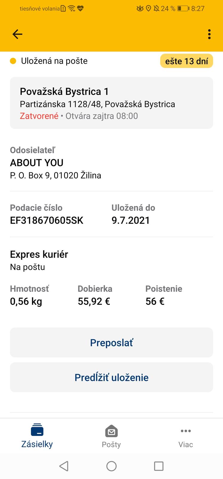 ja som volala na konkretnu postu, ze si po to pridem neskor, tak mi to etse par dni podrzali, no nejednalo sa o dobierku