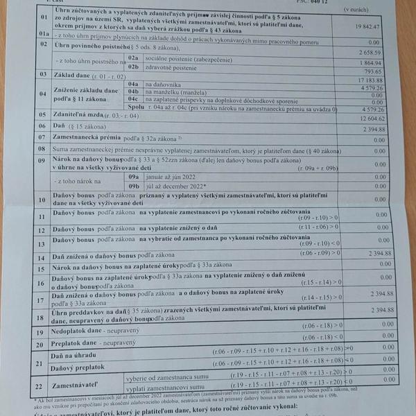 máš Potvrdenie o zdaniteľných príjmoch za rok 2022? podľa toho vieme pozrieť či mal výjsť preplatok alebo nie