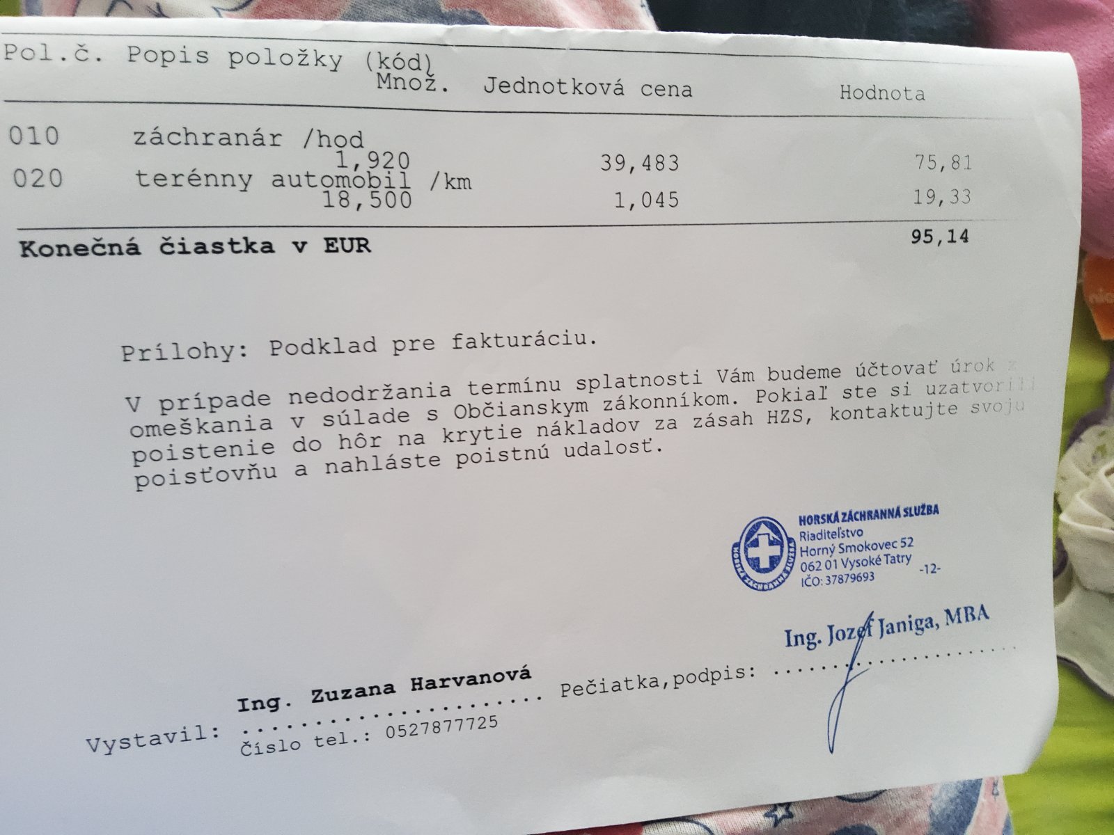S mamou sme zablúdili v horách. Postihla nás tma. Museli sme zavolať horskú záchrannú službu. Povedali ze nič neplatíme. Ale dnes nám prišla faktúra že máme platiť 190eur. No nemáme toľko. Mama je chorá a jej účet ma na starosti brat. Ale on je po nehode v nemocnici a nemá nám ako pomôcť. Co robiť prosím? Poistenie nemáme. My do hôr nechodíme. Toto bola náhoda. Ja som chcela ísť na bedle. Už pri prvom ťažkom úseku som sa chcela vrátiť, ale mama chcela ísť ďalej.