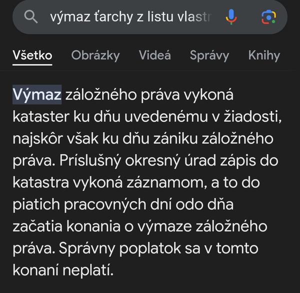 @egonsk my sme si kúpili s manželom dom za hotovosť a pôvodný majiteľ mal ťarchu úver, na liste vlastníctva sme už my ako majiteľia ale máme tam jeho ťarchu, úver je už od utorka vyplatený a banka dala vinkuláciu na kataster, ako dlho to trvá kým sa to aktualizuje a bude list vlastníctva čistý?