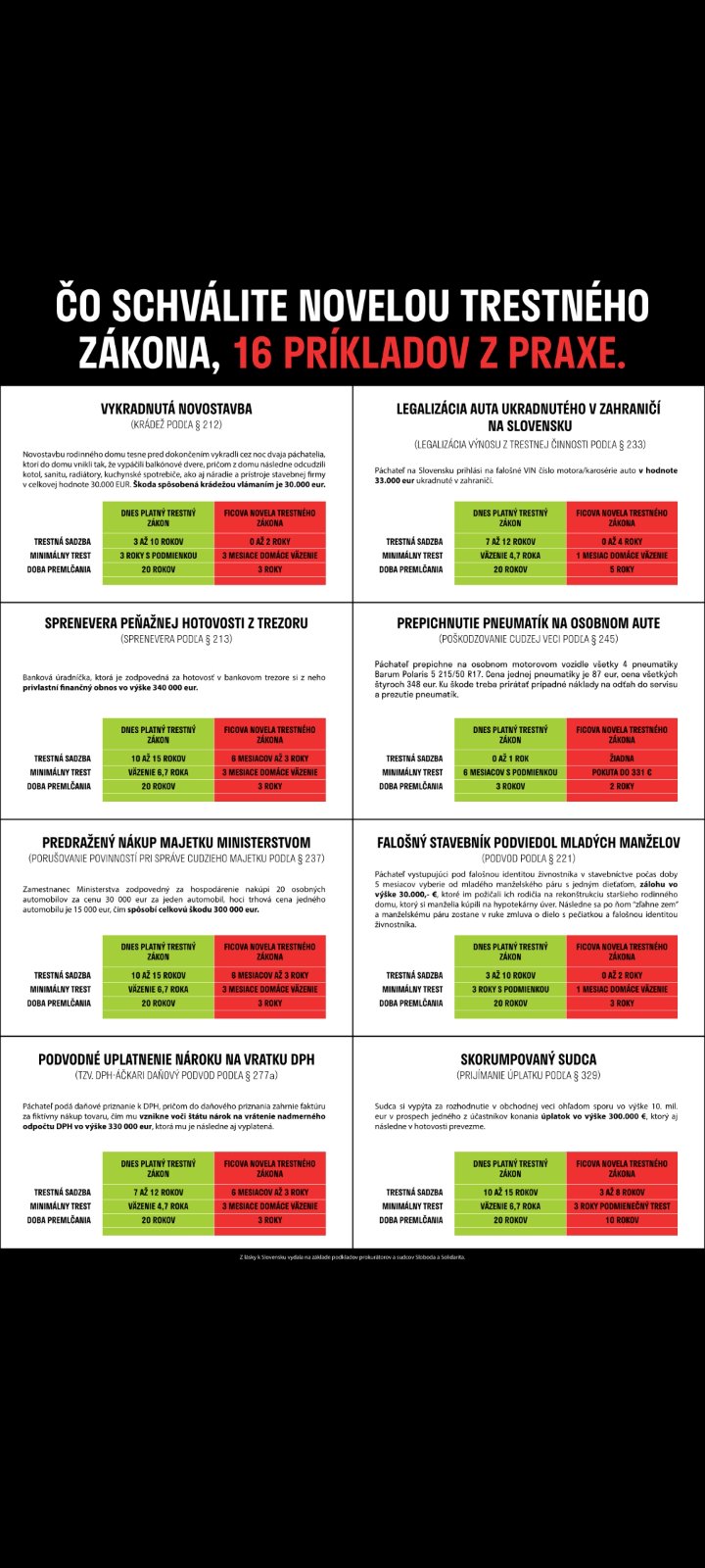 @slovenka753 smiesna novela? To naozaj? Vsak sa tou novelou podkopava vymozitelnost prava kazdeho z nas. Touto novelou sa stava mnozstvo trestnych cinov nepotrestatelnych. Toto je ucelova novela na ochranu niektorych, ale na tuto novelu doplatime vsetci. Tu nejde o to, ze nejaky uradnicek na ministerstve bude mat volnu ruku pri rozhodovani, pretoze ak to dobre zmanazuje, tak nebude stihany za korupciu. Tato novela vytvara beztrestnost zs mnozstvo skutkov, ktore sa mozu stat kazdemu z nas. Kradeze cohokolvek. A teny hyenizmus, ktorym niektori obhajuju tieto zmeny je nevidany.