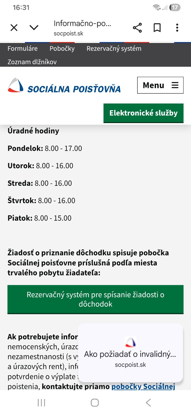 @rozculena Na sociálke mi povedali ak si chcem podať žiadosť o invalidný dôchodok tak sa mám elektronický objednať cez ten systém na daný termín...A voľné miesto majú zatiaľ až vo Februári.. December-Január majú plný...