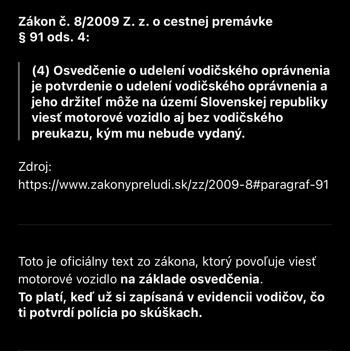 @timeeejkaaa obrázok je falošný na oklamanie, §91 odsek 4 bol vždy o alkohole, môžeš si pozrieť aj pôvodné znenie z roku 2009 https://www.slov-lex.sk/ezbierky-fe/pravne-pred...