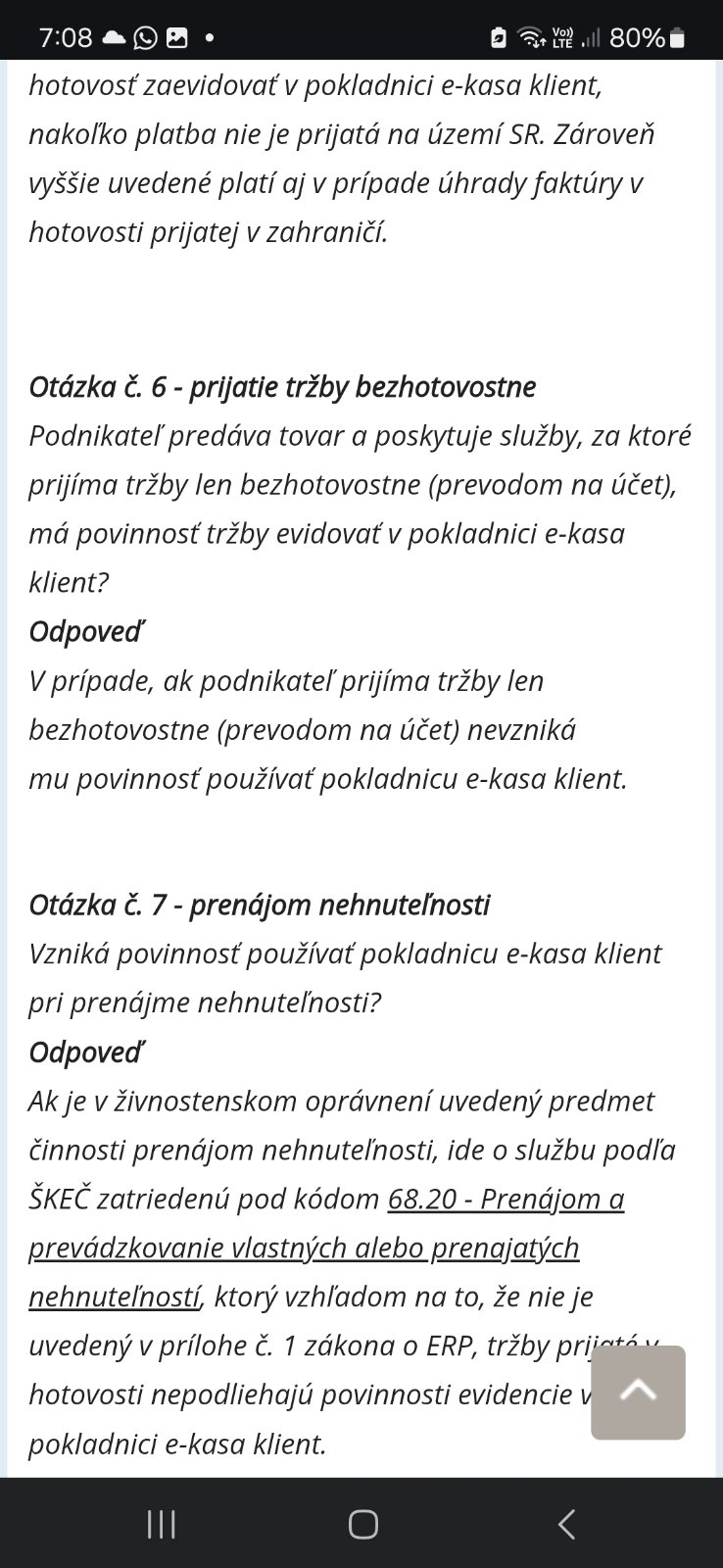 @kimina21 áno, doteraz to tak platilo,ale povedala, že s novým zákonom to finančná správa prehodnocuje. Vraj k tomu asi bude nejaké stanovisko. Nevedela povedať. Na jednej strane, naozaj, ak by niekto chcel zaplatiť v hotovosti, ak nie je pokladňa, platba sa nebude dať prijať od 1.1.2026 na pokladničný doklad (teraz môžu iba tí, čo vykonávajú služby neuvedené v prílohe č. 1 zákona o ERP), ale zasa, kopec živnostníkov robí pre jedného odberateľa, alebo pár odberateľov, ktorí platia výlučne bezhotovostne, príde mi nezmyselné, aby aj tí žiadali kódy pokladnice. A navyše, sú živnostníci, ktorí mimo sezóny živnosť prerušia, potom pri prerušení zivnosti do 3 dní treba zrušiť pokladnicu a pri obnovení zasa žiadať a tak dokola. Je to komplikované