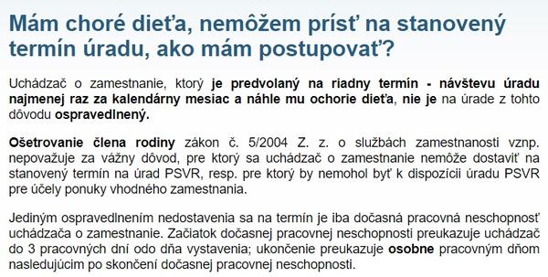 PS.: choroba dietata a jeho starostlivost o neho, nieje dovod sa nedostavit na termin, ktory mas na urad prace. Ospravedlni ta len tvoja vlastna (neplatena samozrejme) PN.