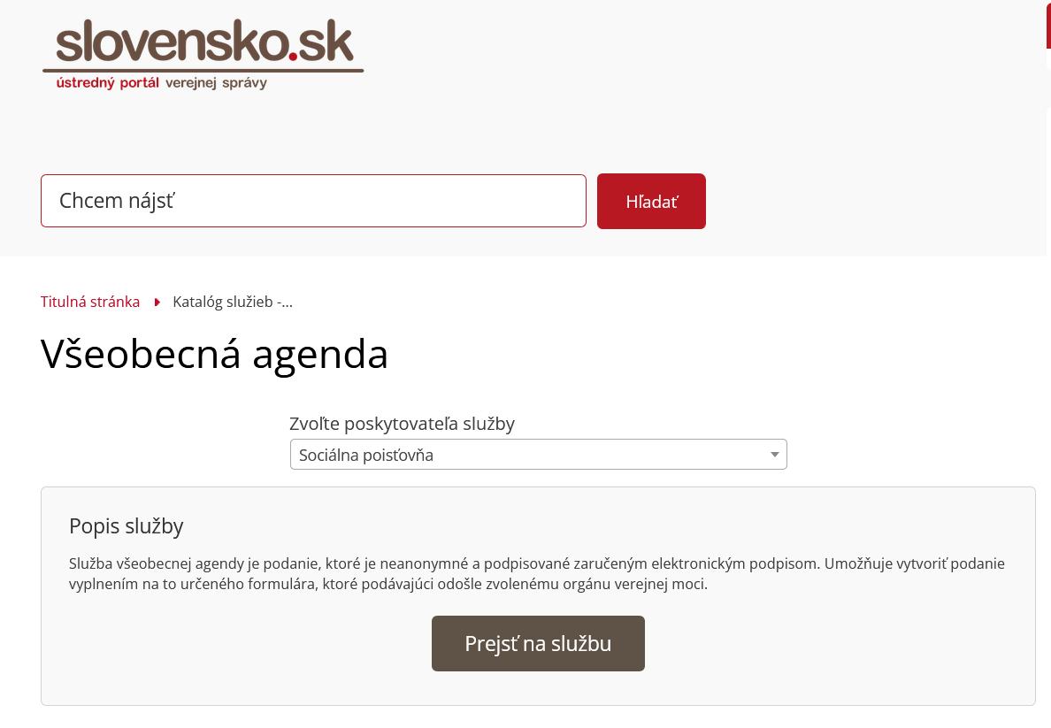 alebo cez slovensko sk posli vseobecnu agendu