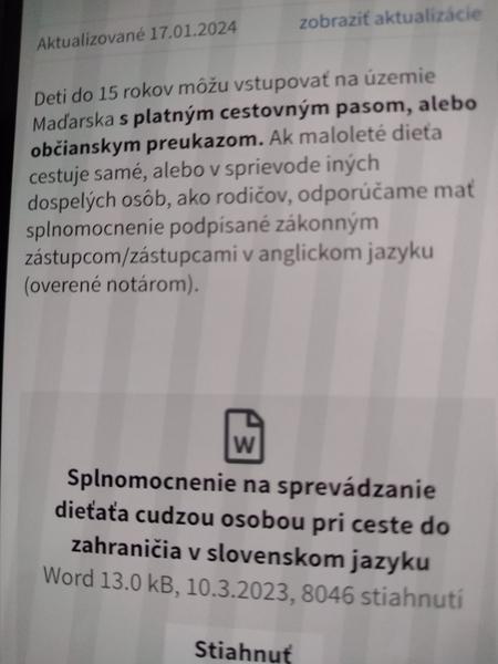Ahojte, chceme ísť v nedeľu do Maďarska.Ale ešte moja 3 ročná dcéra nemá pás.Chcem sa len opýtať, na internete sa píše, že deti do 15 rokov môžu vycestovať buď s pasom alebo s občianským.Myslia tým určite občianský s fotkou.Ak ale by som zobrala rodný list + občianský ,ktorý deti dostávajú bez fotky, tak myslíte ,že by nam to prešlo? Chceli by sme ísť len na pár hodín do Sárospataku.Ďakujem za vysvetlenie.Ak mi väčšina napíše, že v žiadnom prípade tak, samozrejme nepôjdeme a budeme čakať za pasom.Najlepšie kebyže mi napíšete z vlastnej skúsenosti.Ja som bola pred pár rokmi a vôbec nás nekontolovali a to sme sa báli lebo môj manžel si zabudol občianský doma a zistil to až na mieste.
