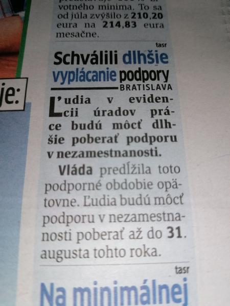 Dnes bolo v novinach ze predlzenie podpory bude trvat do 31.08.20 a koniec.