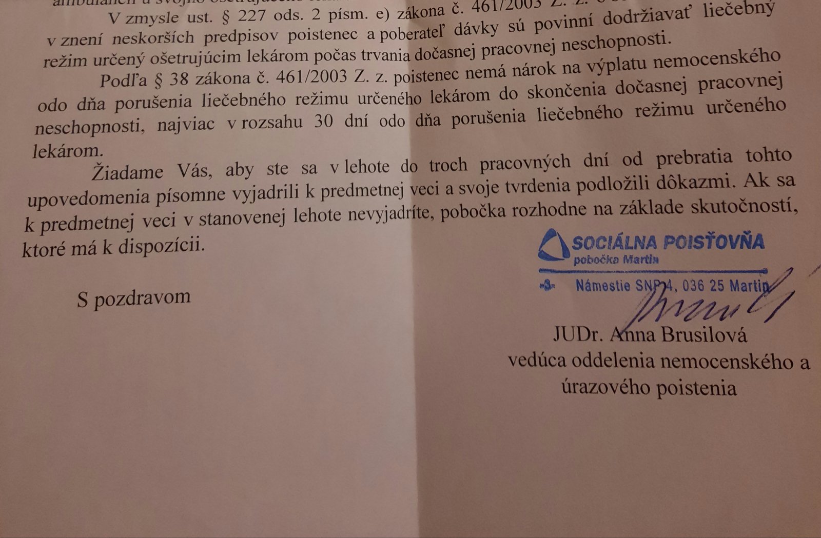 @jaron Ano volala som hneď vysvetlila som cez telefón ,proste robili si zo mba srandu,zvýšila som hlas vyjadrila sa že proste o 7rano ked je niekto na PN plus dceru v horuckach ze bude spať, neriešili ma,na druhy deň mi poslali papier ze 9.1.mi pn ukončuju to by bolo v poriadku no dnes mi poslali ďalší papier o tej kontrole stym ze to mam vypísať zdokladovat....a od ich kontroli mi nebudú vyplatene davky počas pn .Nerozumiem predsa mi pn oni sami ukončili skôr plus aj peniaze stopli.
