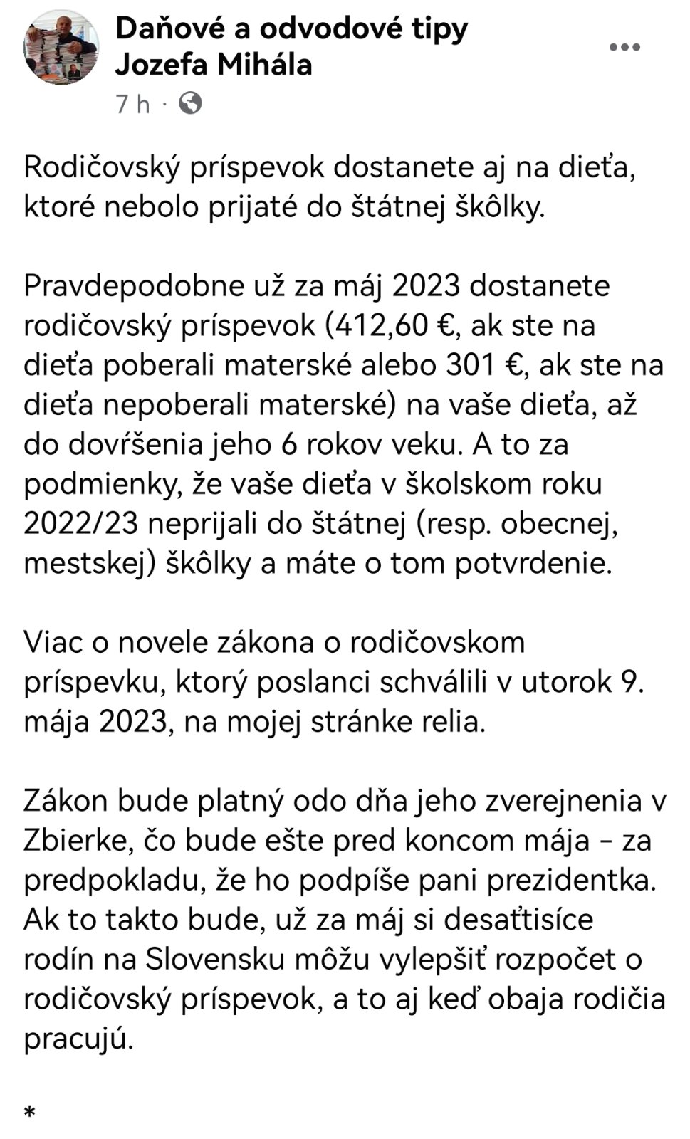 Lebo u mihala na FB uz začali vypisovat všetky co im dieta do skolky nevzali ci majú nárok.