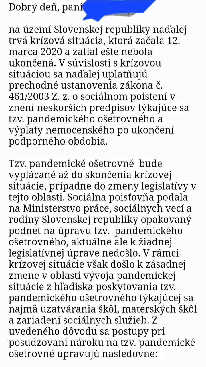 Čo sa týka toho,že nepíšem o konkrétnych zmenách, opakujem sa, pokiaľ to nie je oficiálne,nebudem predsa šíriť informácie a možno zbytočnú paniku. Mimoriadna ani krízová situácia by sa rušiť nemali, upravujú sa iba podmienky kto a kedy môže čerpať pandemické očr