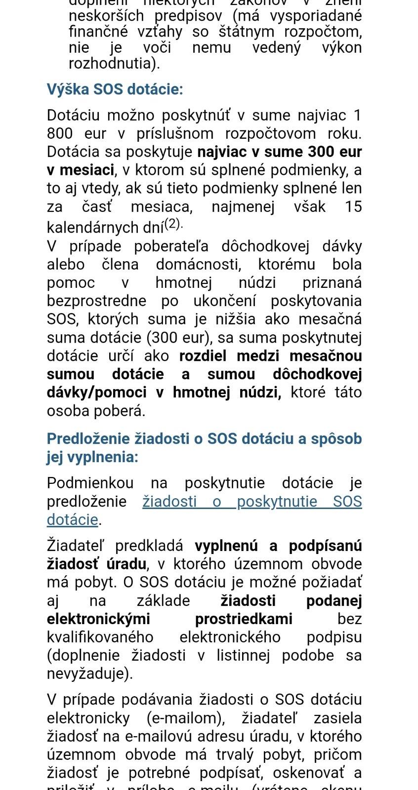 Dobrý večer mám nárok na SOS dotáciu keď poberam príspevok na byvanie