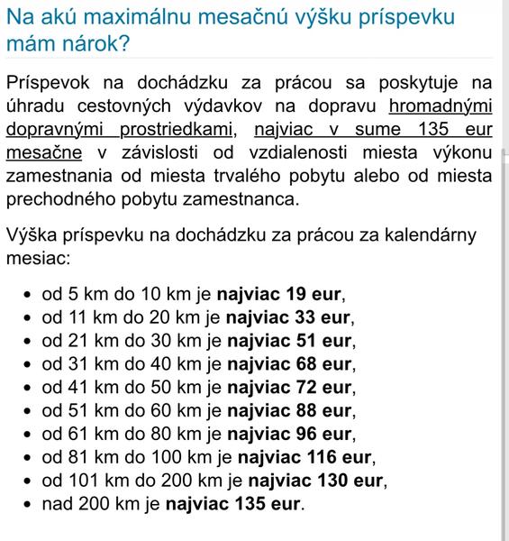 mám otázku ohľadom príspevku na dochádzku do práce z úradu práce. Vzdialenosť medzi bydliskom a prácou je autom 45 km, ale ak idem hromadnou verejnou dopravou, vychádza mi vzdialenosť o 10 km väčšia. Neviem, ako sa tieto kilometre počítajú – je to fixne stanovené alebo záleží na použitom spôsobe dopravy? Mohol by niekto vysvetliť, akým princípom sa tento výpočet riadi, prípadne poskytnúť svoje skúsenosti?