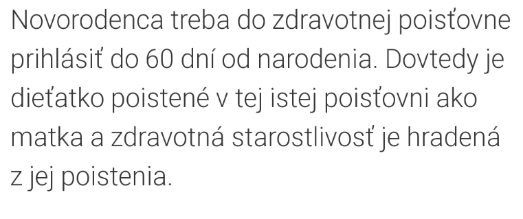 Riesila som to na konci roka 2016. Porod bol v CR a tym sme dlhsie cakali na papiere. V poistovni mi tiez tvrdili, ze do 60 dni ide dieta cez moju poistku. Pediatricka mi vysvetlila, ze sice to hovoria, ale realne to tak nie je. Ona ked da do vykazu moje rodne cislo, tak to system automaticky zamietne, lebo tak stara osoba nemoze byt u pediatricky. Ma to potvrdene priamo od zamestnanca poistovne. Pediatricke v tomto verim. Nepytala odo mna uhradu za osetrenie. Neviem, ci to urobila zadarmo alebo si to datumovo poriesila.