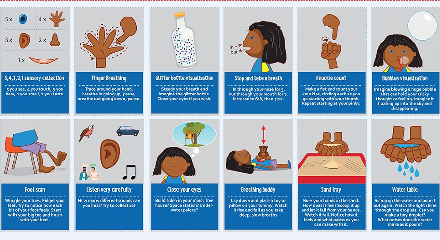 Potom zopar jednoduchych ako sed na rukach, silno zatvor oci, silno stisni pery a zhtlni slova, zatni paste, pokrc papier, silno suchaj ruky akoby si chcel vyrobit ohen, hlboky nadych a vydych, pocitanie hanok na prste, fukat bubliny ktore odnesu tvoje emocie pocas stresu, zapocuvat sa do zvukov okolia, vyfukat vsetok hnev do imaginarneho balona a potom ho vypustit nech odleti.