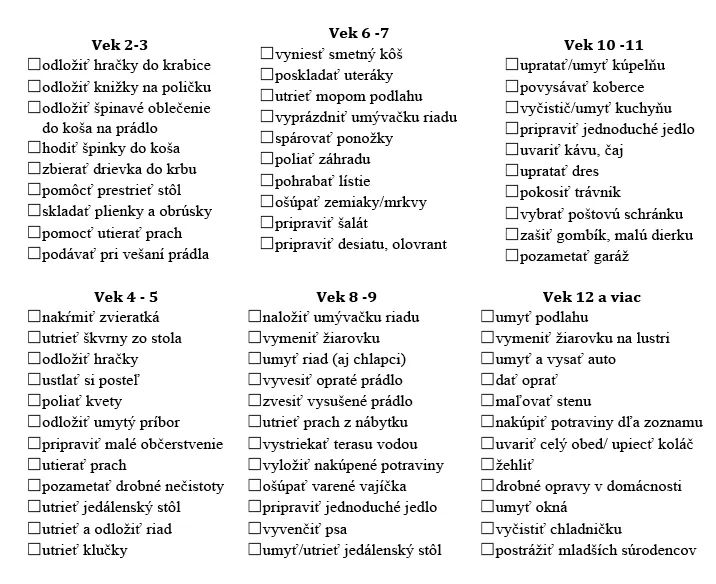 Ja som z tohto zoznamu nič v tých vekoch nerobila keď som vyrastala 😆 nejakým zázrakom zo mňa vyrástol normálny, dospelý, samostatný človek, ktorý ovláda všetky domáce práce 🤔 na starosti som mala domáce úlohy a poriadok v izbe. A pri upratovaní v sobotu utrieť prah