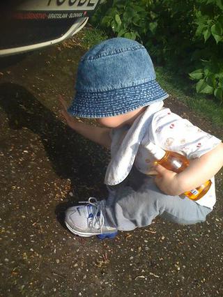 Boli sme na dvore s malým.... hral sa, jašil, s vodou, s blatom.. (vidno na fotkách, co pridávam, pomáhala tatovi umývať auto)
