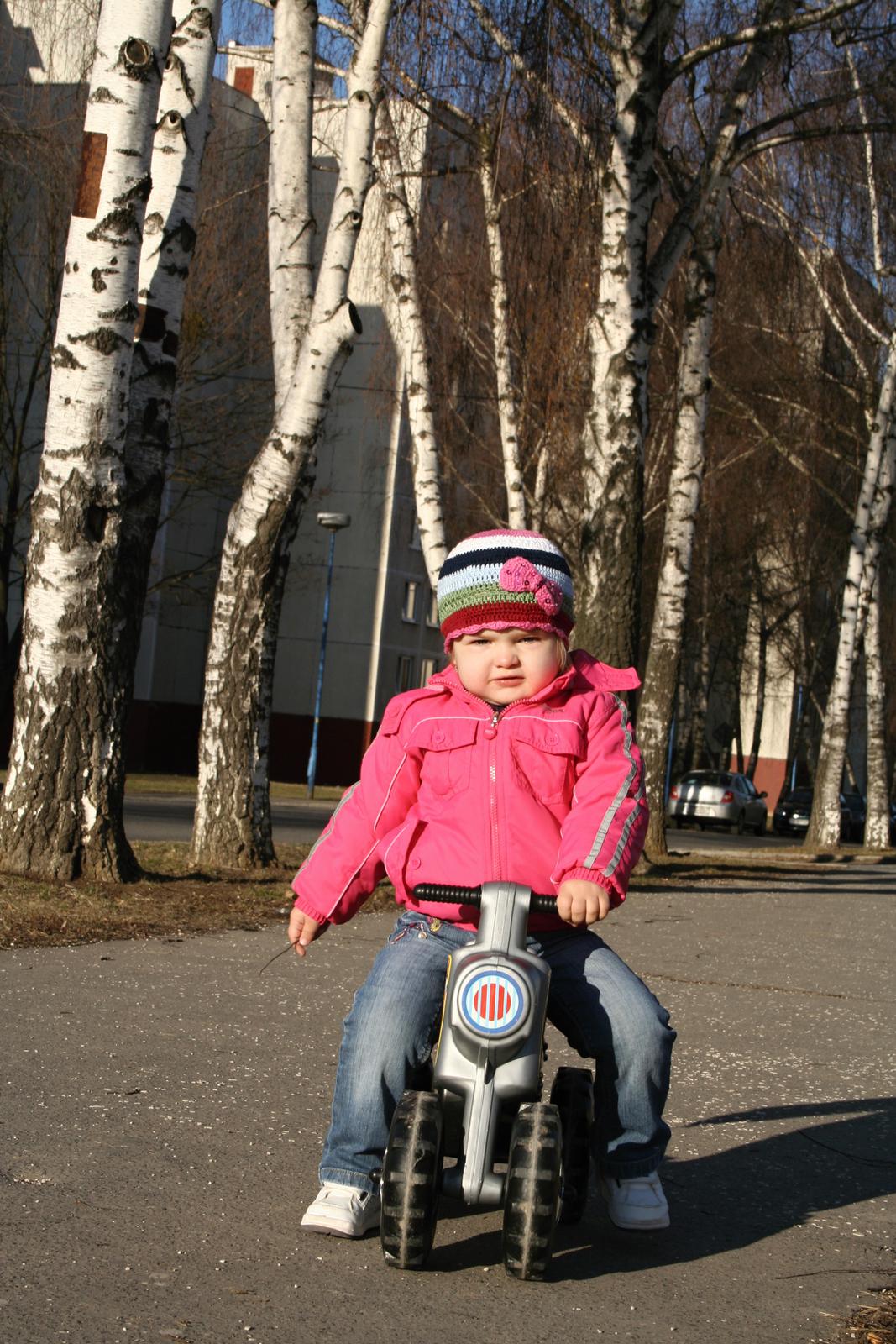 Naša malá dostala trojkolku Smart Trike na 1. narodeniny a odvtedy sme s ňou chodili von. Mne to veľmi vyhovovalo, najmä preto, že som už čakala druhé bábo. Nakoľko naše sídlisko je veľmi terénne, hore kopec, dole kopec, veľa áut a schodov, tak trojkolka mi veľmi vyhovola, lebo sa dala ľahšie ovládať jednou rukou než napr. kočík. Využili sme ju celé leto, aj jeseň. V tej dobe by som jej odrážadlo určite nedala. Neskôr sa naučila aj na ňom.