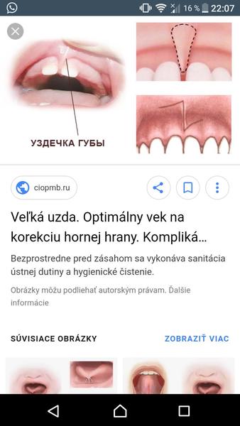 Moja malá to má tiež. Má aj medzeru medzi mliečnymi jednotkami a strašne zle sa jej čistia horné zubky. Zubárka povedala, že zatiaľ sa to nejde riešiť. No máme problém s čistením zubkov, myslím že ako jej to ťaháme, aby sme jej zubky vyčistili, tak ju to bolí. NIekde som čítala že sa takéto zubky s uzdičkou aj inak čistia, viete ako na to ? Lebo nechce si vôbec dať oddialiť hornu peru kvôli hygiene zubkov. ☹️